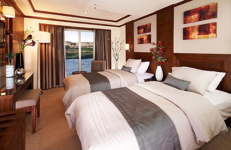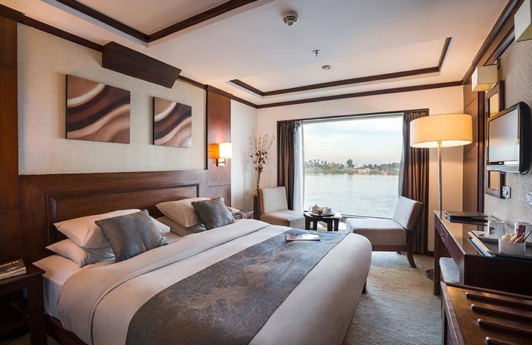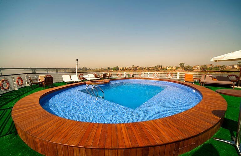 The cruise sails between Luxor and Aswan, taking you on a guided exploration of Egypt’s most iconic landmarks, including the Valley of the Kings, Karnak Temple, Edfu, Kom Ombo, and Philae Temple. Onboard, guests can enjoy gourmet dining, a full-service spa, fitness facilities, and a sundeck pool with breathtaking views.